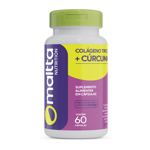 Ingredientes: Extrato de Rizomas de Cúrcuma longa, Colágeno de frango com colágeno tipo II não desnaturado e antiumectante talco. Cápsula: gelatina e água.